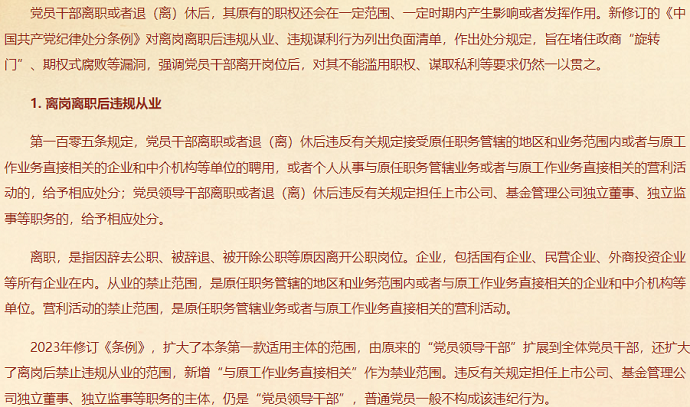 每日一课丨党员干部离岗离职后违规从业、违规谋利的处分规定