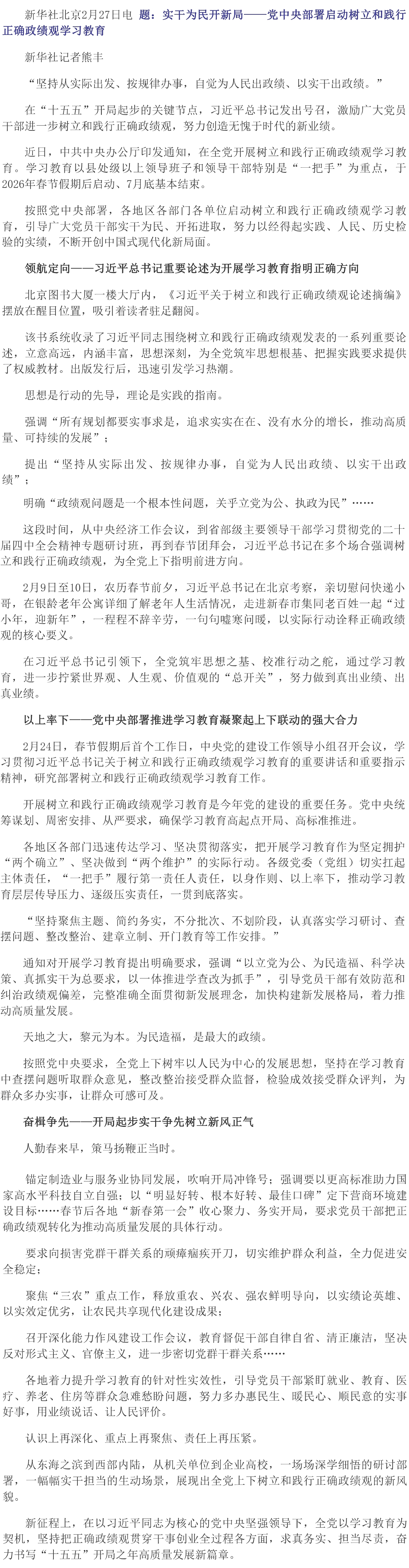 实干为民开新局丨党中央部署启动树立和践行正确政绩观学习教育