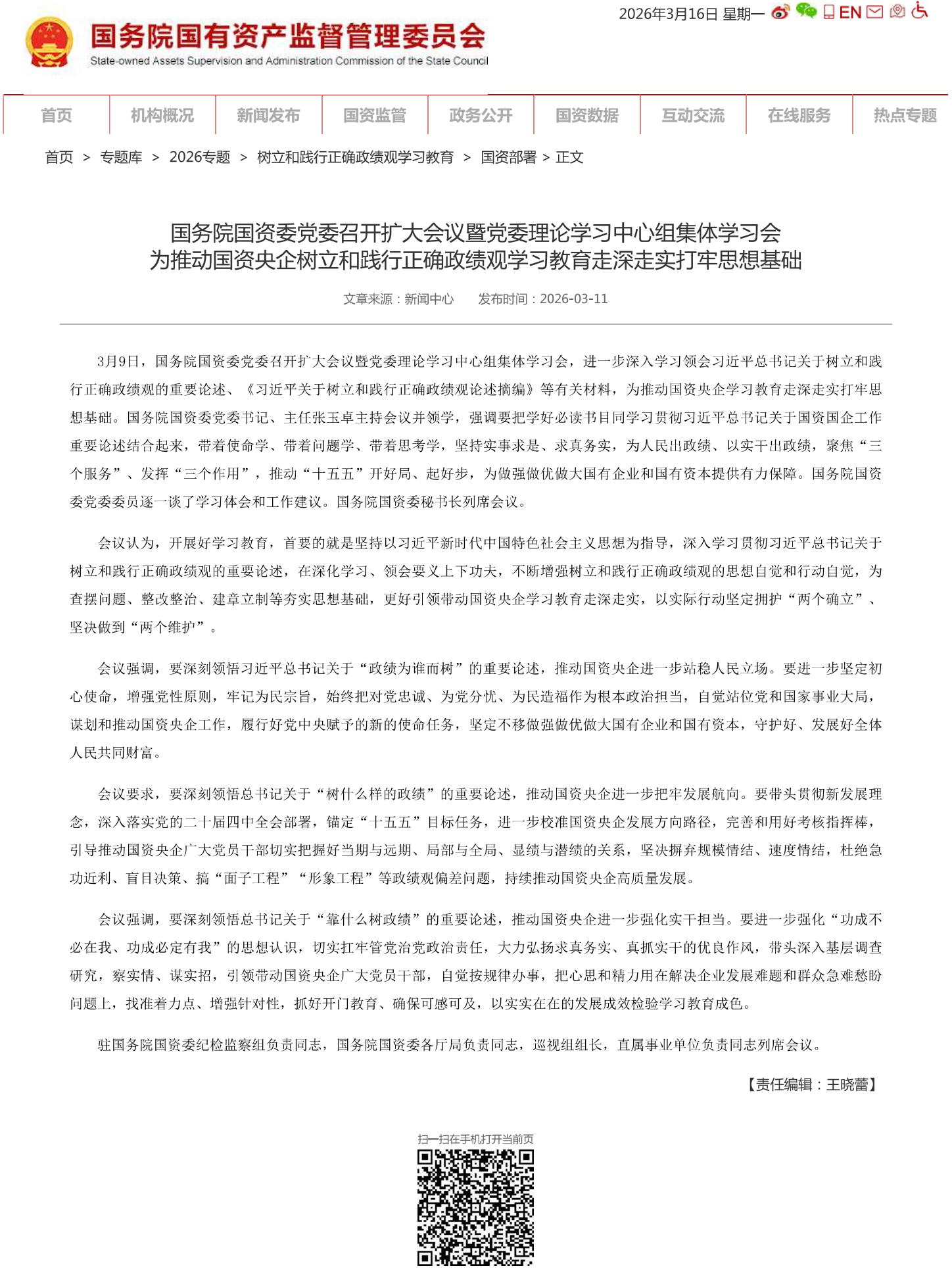 国务院国资委党委召开扩大会议暨党委理论学习中心组集体学习会为推动国资央企树立和践行正确政绩观学习教育走深走实打牢思想基础