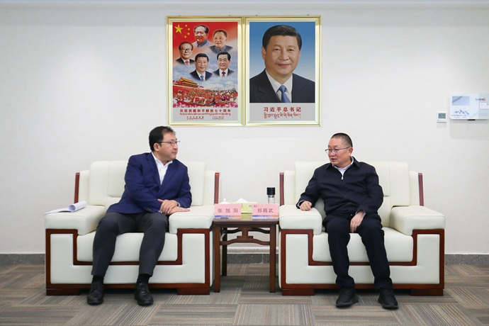 祁腾武对张旭阳一行来访表示欢迎,并介绍了西藏开投集团概况、生产经营和投资建设情况。他表示,光大银行作为国内领先的综合性金融机构,在绿色金融、创新金融服务方面具有显著优势。西藏开投集团与光大银行已有良好的合作关系,期待与光大银行在多层次、多领域开展更加深入务实合作,欢迎光大银行参与西藏开投清洁能源开发建设,共同探索“科技赋能产业、金融助力发展”新路径,助力地区经济社会发展和国家“双碳”战略目标实现。