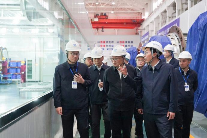 调研期间,祁腾武一行先后赴东方电机重跨车间、金模冲剪分厂,东方汽轮机工业透平总装车间、叶片数字化黑灯生产线,东方锅炉氢能示范园、容器一分厂等厂区,实地了解其生产工艺、核心技术落地应用等情况。
