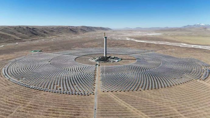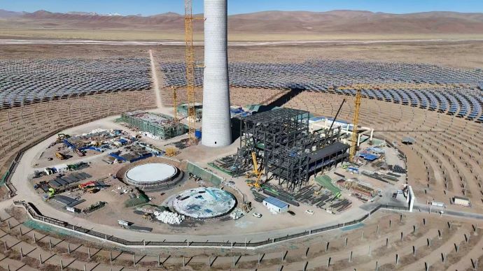 安多土硕光热项目共配置15927面定日镜,工人正在紧张有序地进行安装,计划于明年3月搭建完毕,塔顶吸热器拟于明年4月安装完成。