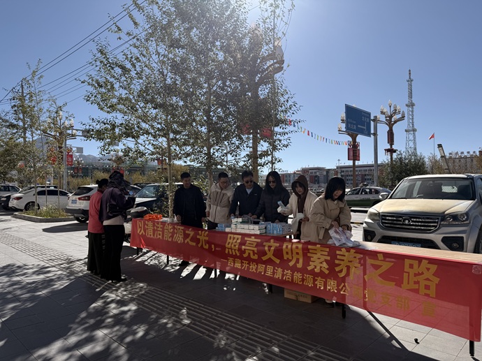 为深入践行习近平生态文明思想,充分发挥基层党组织战斗堡垒作用和党员先锋模范作用,推动清洁能源绿色理念与文明素养建设深度融合,近日,西藏开投阿里清洁能源公司党支部在阿里地区噶尔县组织开展“以清洁能源之光,照亮文明素养之路”系列主题公益宣传实践活动。