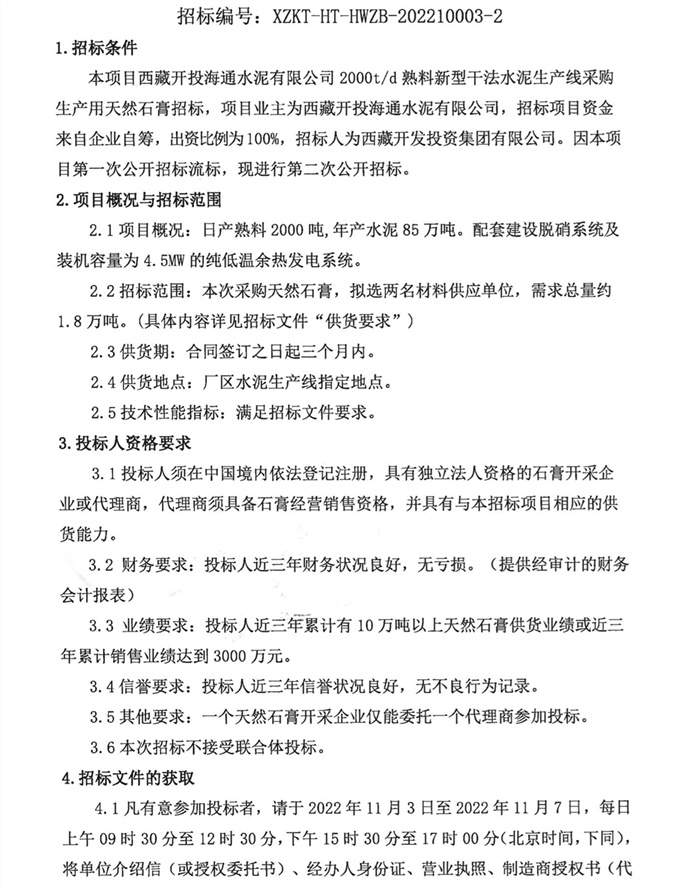 西藏开投海通水泥有限公司2000t/d熟料新型干法水泥生产线