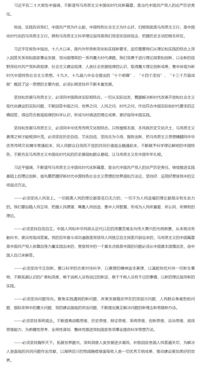 二十大报告摘登 开辟马克思主义中国化时代化新境界